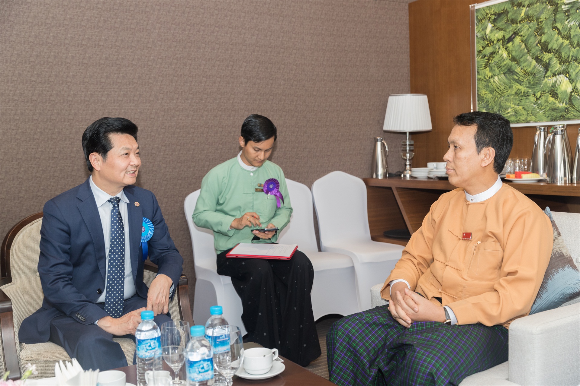 論壇期間,仰光省省長吳漂敏登(H.E. U Phyo Min Thein)親切會見了受邀參加論壇的中資企業(yè)代表寶鷹集團董事局主席古少明一行。這也是吳漂敏登省長第二次會見古少明主席。