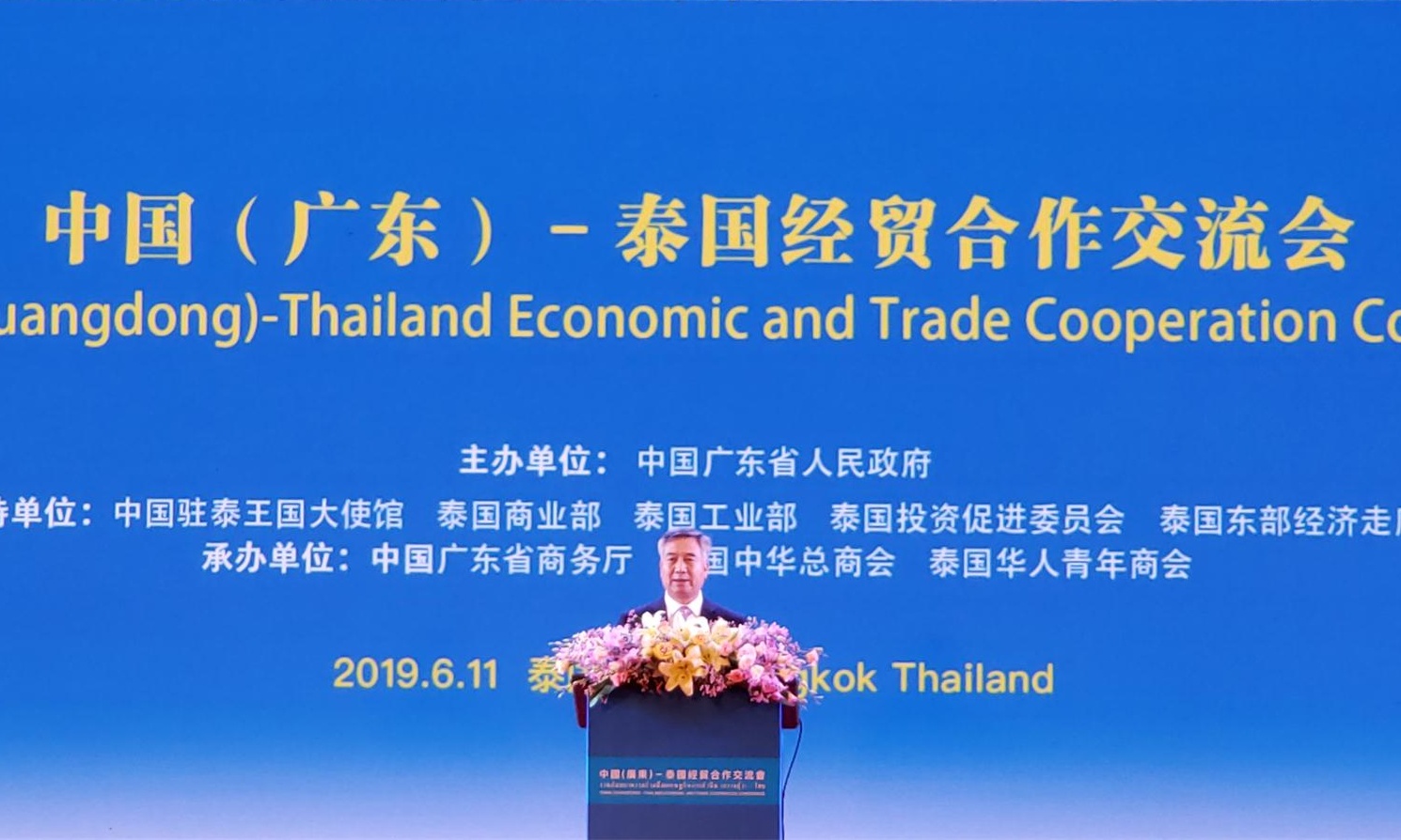 6月11日,中國(廣東)— 泰國經(jīng)貿(mào)合作交流會暨粵港灣大灣區(qū)推介會在曼谷舉辦。交流會由廣東省人民政府主辦、泰國中華總商會及泰國華人青年商會承辦。中泰兩國政界、商界代表共600多人出席交流會,圍繞“一帶一路”倡議、粵港澳大灣區(qū)建設(shè)與“泰國4.0”國家發(fā)展戰(zhàn)略、東部經(jīng)濟走廊建設(shè)的深度對接進行交流和探討。