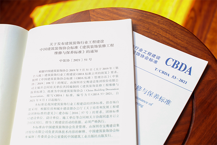 2021年9月,由寶鷹集團(tuán)主編的中國建筑裝飾協(xié)會CBDA標(biāo)準(zhǔn)——《建筑裝飾裝修工程維修與保養(yǎng)標(biāo)準(zhǔn)》(T/CBDA 53-2021)正式實(shí)施。