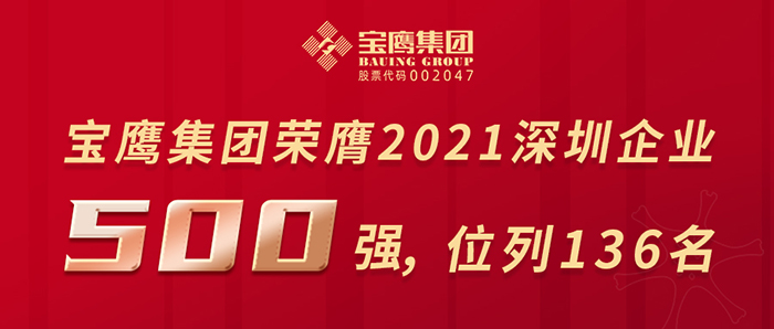 日前,2021深圳500強(qiáng)企業(yè)榜單發(fā)布。憑借出色的企業(yè)實(shí)力,寶鷹集團(tuán)榮幸入榜,位列榜單第136位。