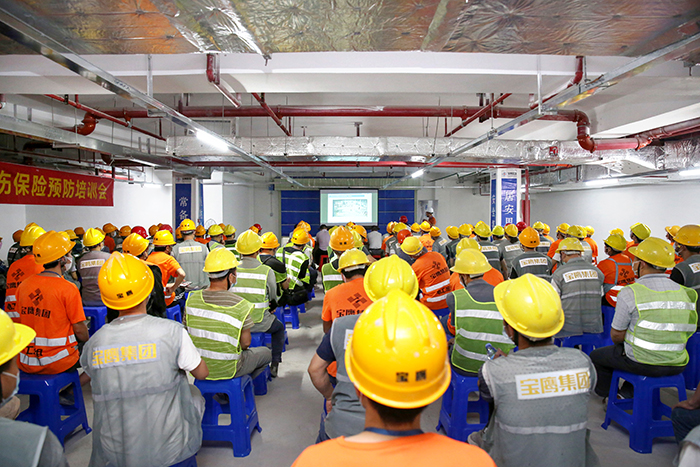 5月9日下午,深圳市建筑裝飾行業(yè)工傷保險(xiǎn)預(yù)防培訓(xùn)會(huì)在寶鷹集團(tuán)深圳會(huì)展灣東城廣場(chǎng)(二期)公寓戶內(nèi)批量精裝修施工(一標(biāo)段)項(xiàng)目舉行。深圳市裝飾行業(yè)協(xié)會(huì)常務(wù)副會(huì)長(zhǎng)王彥波、寶鷹集團(tuán)總工程師王建國(guó)、寶鷹集團(tuán)副總裁鐘志剛以及項(xiàng)目一線管理生產(chǎn)人員150余人參加培訓(xùn)。