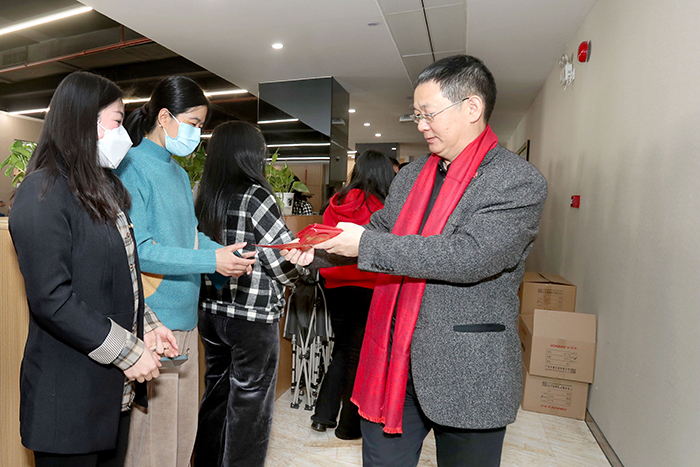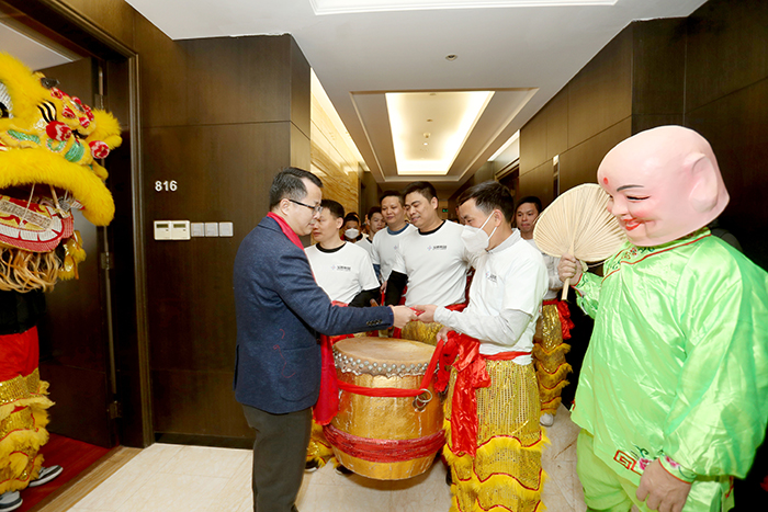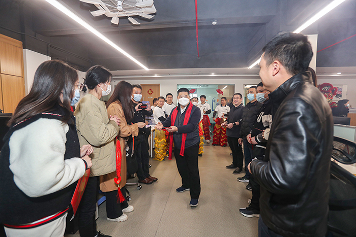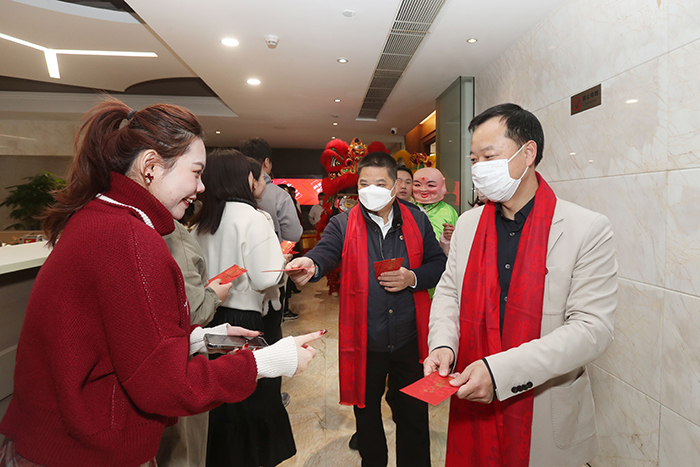 9點(diǎn)18分,伴隨著震耳的鞭炮聲和歡快的寶鷹醒獅隊鑼鼓聲,寶鷹股份副董事長兼總經(jīng)理古少波,寶鷹股份常務(wù)副總經(jīng)理、寶鷹建設(shè)董事長薛依東攜公司高管團(tuán)隊向總部全體員工拜年,派發(fā)開工利是。懷著對未來的美好憧憬與期待,全體寶鷹人必將凝聚“一家人一條心一起干”的磅薄力量,擺出“開局就開戰(zhàn)、起步就起跑”的姿態(tài),同心同行啟航新征程。