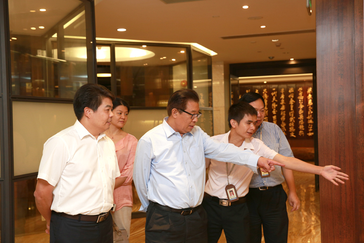 吳井田會長在寶鷹集團(tuán)董事長古少波、總裁成湘文的陪同下了解寶鷹集團(tuán)所取得的榮譽(yù)