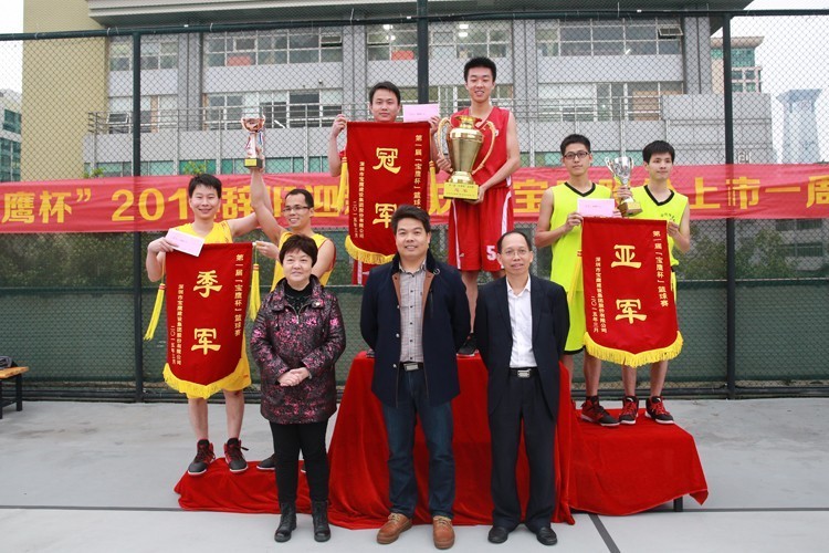 3 月4日下午,“寶鷹杯”2014辭舊迎新暨慶祝寶鷹股份上市一周年籃球賽總決賽于深圳車公廟OWIN球場舉行。寶鷹集團董事長古少波、工會主席溫武艷、監(jiān)事會主席胡蘭萍等領導蒞臨決賽現(xiàn)場并為獲獎球隊頒獎。