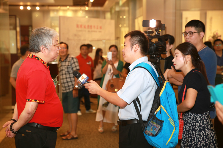 周國城主席在展覽上接受媒體采訪