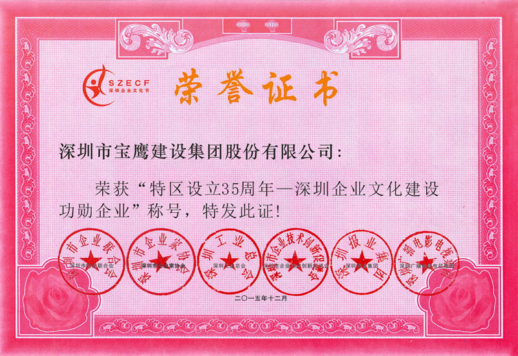 126家深圳企業(yè)在頒獎(jiǎng)典禮上獲得“特區(qū)設(shè)立35周年-深圳企業(yè)文化建設(shè)功勛企業(yè)”等榮譽(yù)。其中,寶鷹集團(tuán)憑借多年來(lái)沉淀的極富傳統(tǒng)與時(shí)代精神的企業(yè)文化內(nèi)涵,豐富多彩的企業(yè)文化表現(xiàn)形式,活潑多樣的企業(yè)文化活動(dòng)獲得多項(xiàng)企業(yè)文化建設(shè)殊榮,包括2015年度深圳企業(yè)文化建設(shè)十佳單位、特區(qū)設(shè)立35周年-深圳企業(yè)文化建設(shè)功勛企業(yè)、特區(qū)設(shè)立35周年-深圳企業(yè)文化建設(shè)功勛人物、2015年度深圳企業(yè)文化宣傳工作先進(jìn)單位與優(yōu)秀通訊員等獎(jiǎng)項(xiàng)。古少明主席、古少波董事長(zhǎng)、文化品牌部主管高升先后領(lǐng)取了各獎(jiǎng)項(xiàng)。