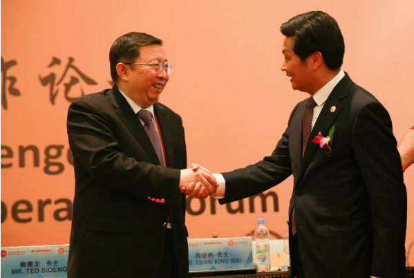 ▲2016年1月22日,許寧寧理事長和古少明主席出席廣東企業(yè)“走出去”大講壇