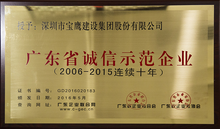 寶鷹集團(tuán)連續(xù)八年榮獲"廣東省最佳誠信企業(yè)”大獎