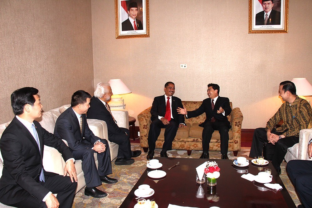 王榮會見印尼官員及企業(yè)家代表(左四為廣東省政協(xié)主席王榮、右四為印尼旅游部長阿里夫、右三為印尼投資協(xié)調統(tǒng)籌部長托馬斯、左三為首任印尼廣東總商會會長古少明)