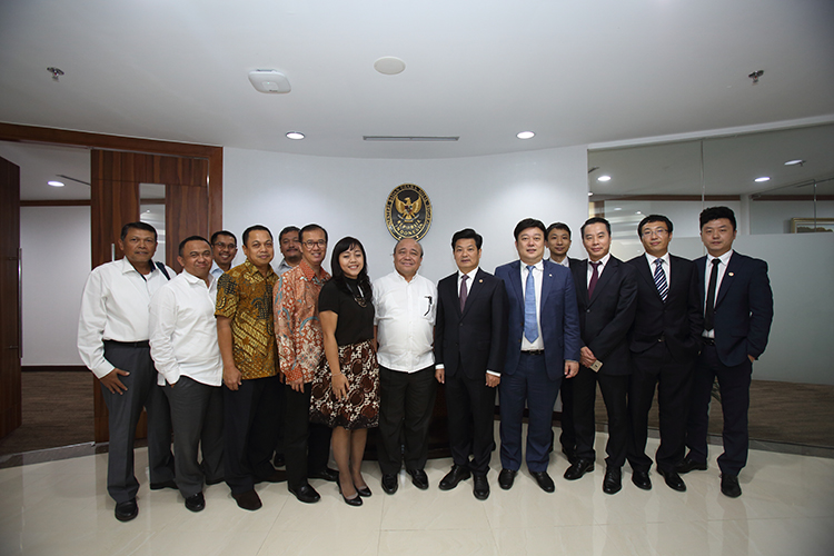 印尼國(guó)有企業(yè)國(guó)務(wù)部專(zhuān)家Sahala Lumban Gaol(中)會(huì)見(jiàn)印尼廣東總商會(huì)代表團(tuán)