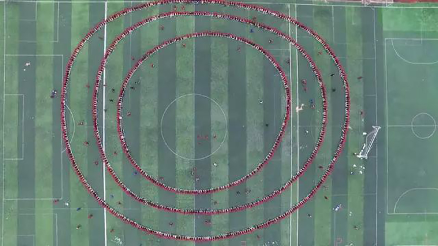 正月初八下午3時(shí)許,活動(dòng)正式拉開了序幕。10個(gè)方陣,60支隊(duì)伍,1000余人在巨大的場地中展現(xiàn)蓬勃英姿。