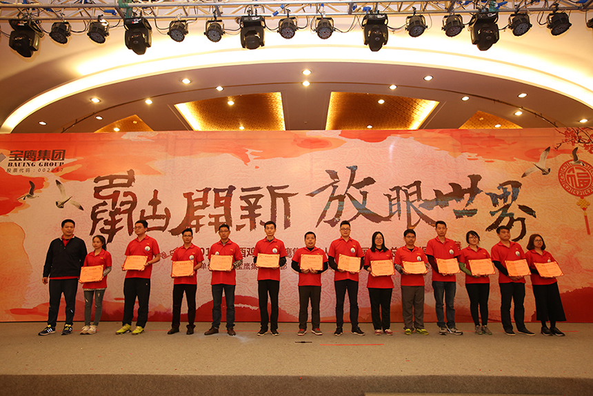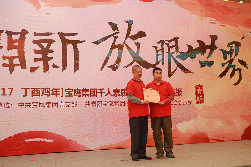 ▲寶鷹集團(tuán)副總裁戴宏為優(yōu)秀員工頒獎(jiǎng)
